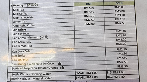 유잇청의 메뉴를 주문하면 각각 다른 계산을 하게됩니다. 유잇청 가게 안에 쌀국수집이 따로 들어가 있는 형태로 운영되기 때문입니다. 그리고 링깃을 현금으로 결제합니다.
